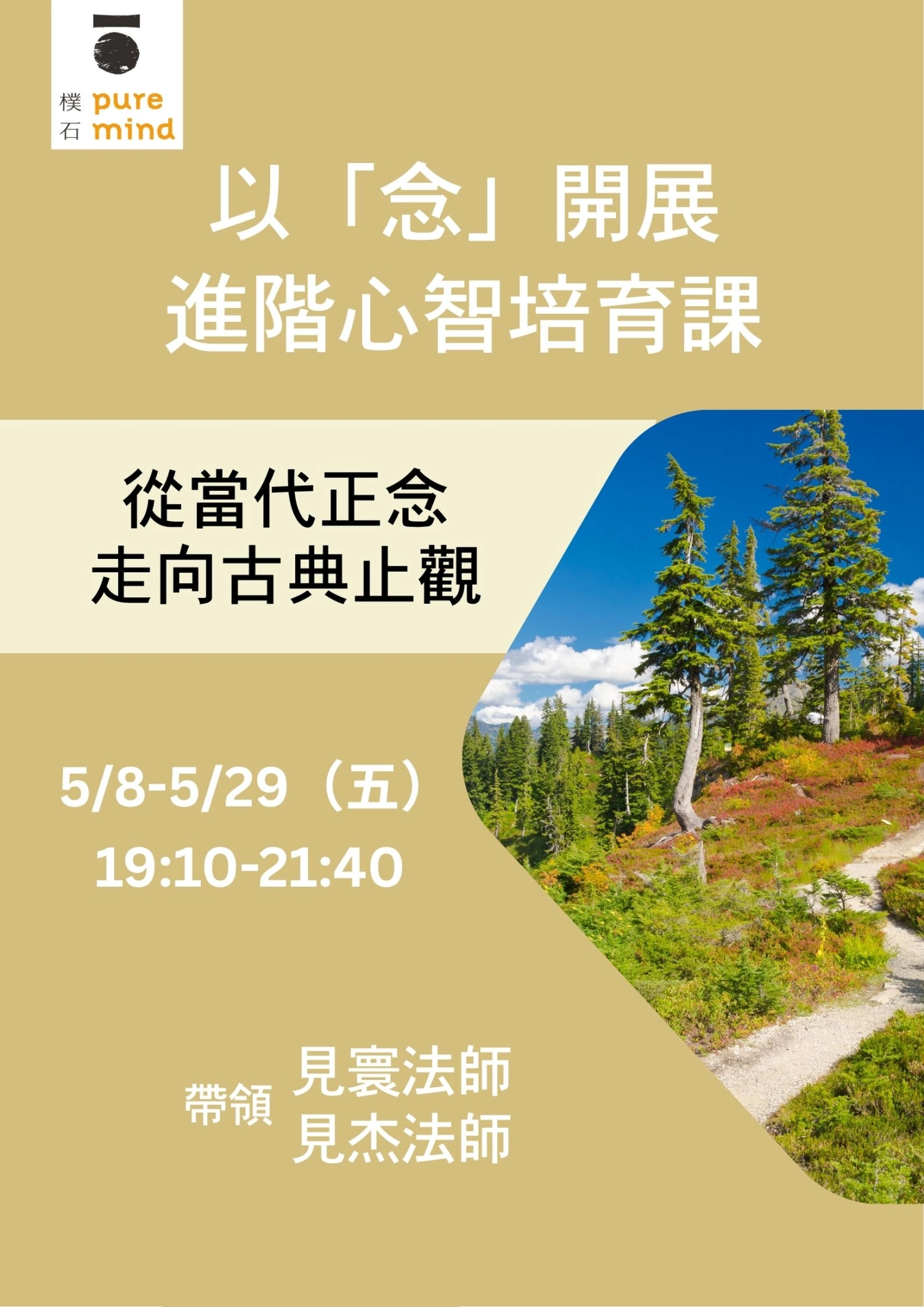 一堂專為渴望突破困境、深化當代正念修習及把握練習時更多精微細節的人,所精心設計的橋接課程。拓展當代正念的深度與廣度,一窺古典止觀的深邃智慧,再進一步朝向建立適合自我操作的止觀修習架構。