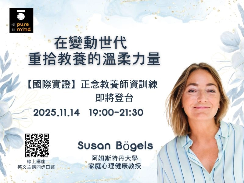 慈心培育系列 慈心培育初階_四週視訊課 8/30-9/20(六)9:30-12:00 帶領:周嘉瑛臨床心理學博士 以慈悲為起點,理解自己的掙扎與脆弱,很多內在的苦,將有機會被重新安放。 專為願意溫柔看待自己、希望在人際與生活中建立更多安定與支持感的人而設計